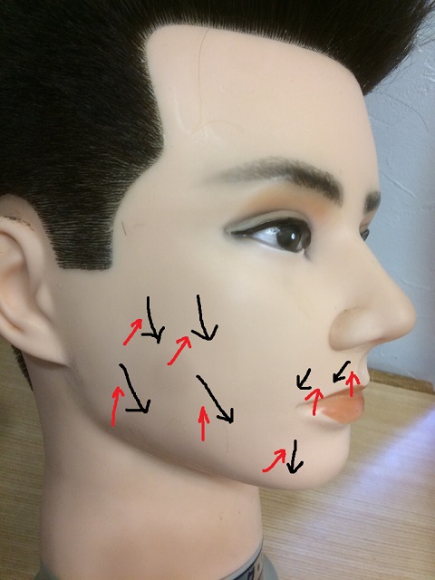 ヒゲには生えている向きがあります、基本は上から下に生えています。